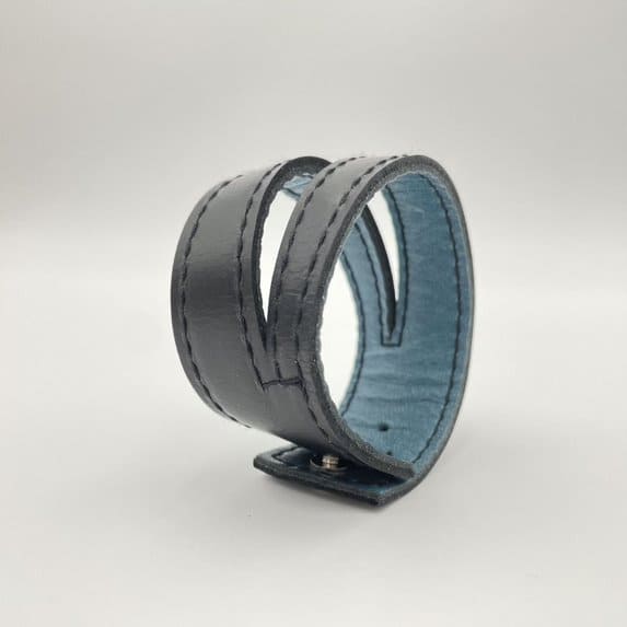 Fait de cuir et d'une attache en acier inoxydable. Il est fait 100% à la main, au Saguenay-Lac-St-Jean. Il est réversible et facile à mettre au poignet. Il est doté de 3 trous d'ajustement et convient ainsi à tous les poignets.